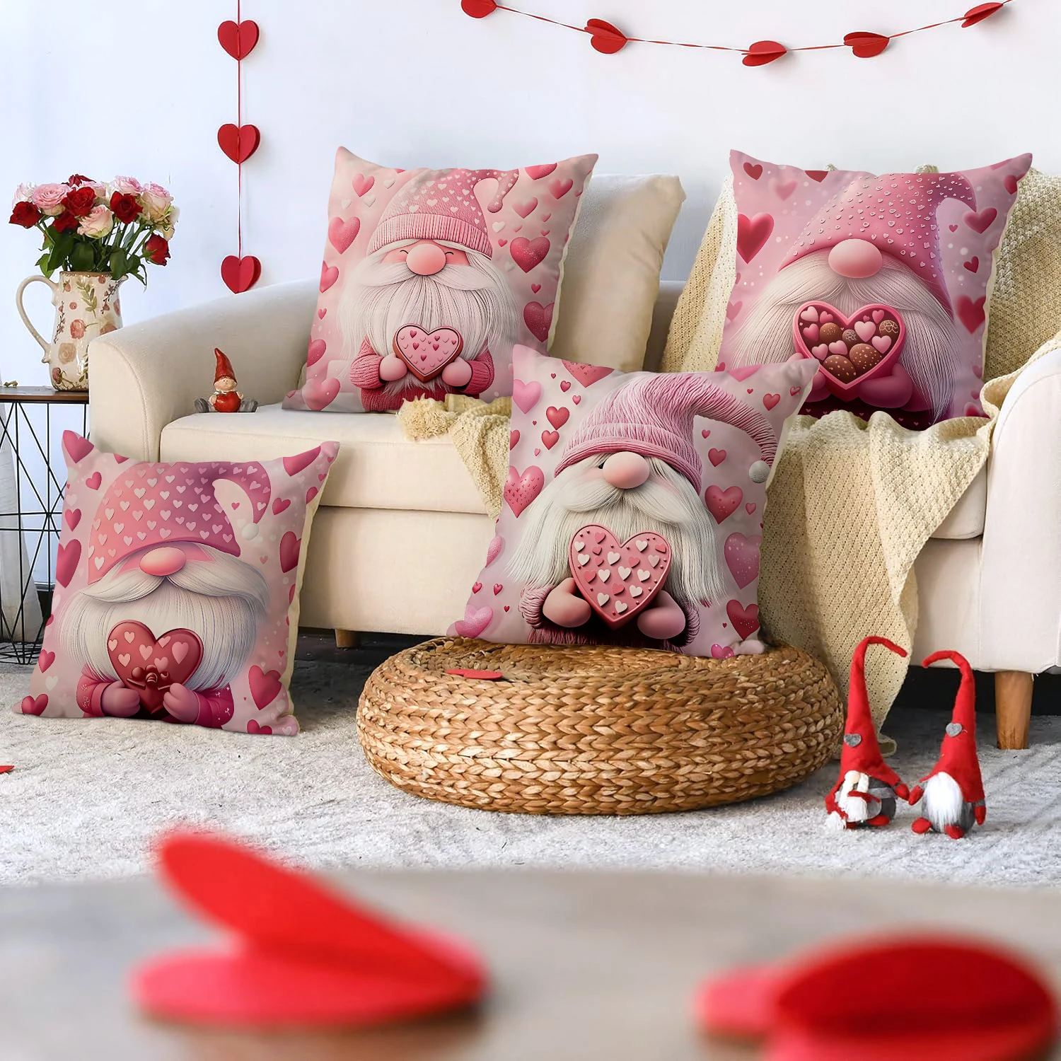 Each cushion cover features a cute cartoon dwarf couple love design, making it an ideal decorative accent for Valentine’s Day, wedding décor, anniversaries, or everyday romantic styling. The playful yet cozy artwork creates a welcoming atmosphere in living rooms, bedrooms, or seating areas.